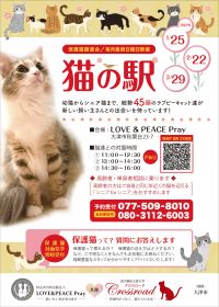 LOVE & PEACEでは、毎月最終日曜日(11:00〜16:00)、猫たちが暮らすシェルターでの譲渡会「猫の駅」を開催いたしております。